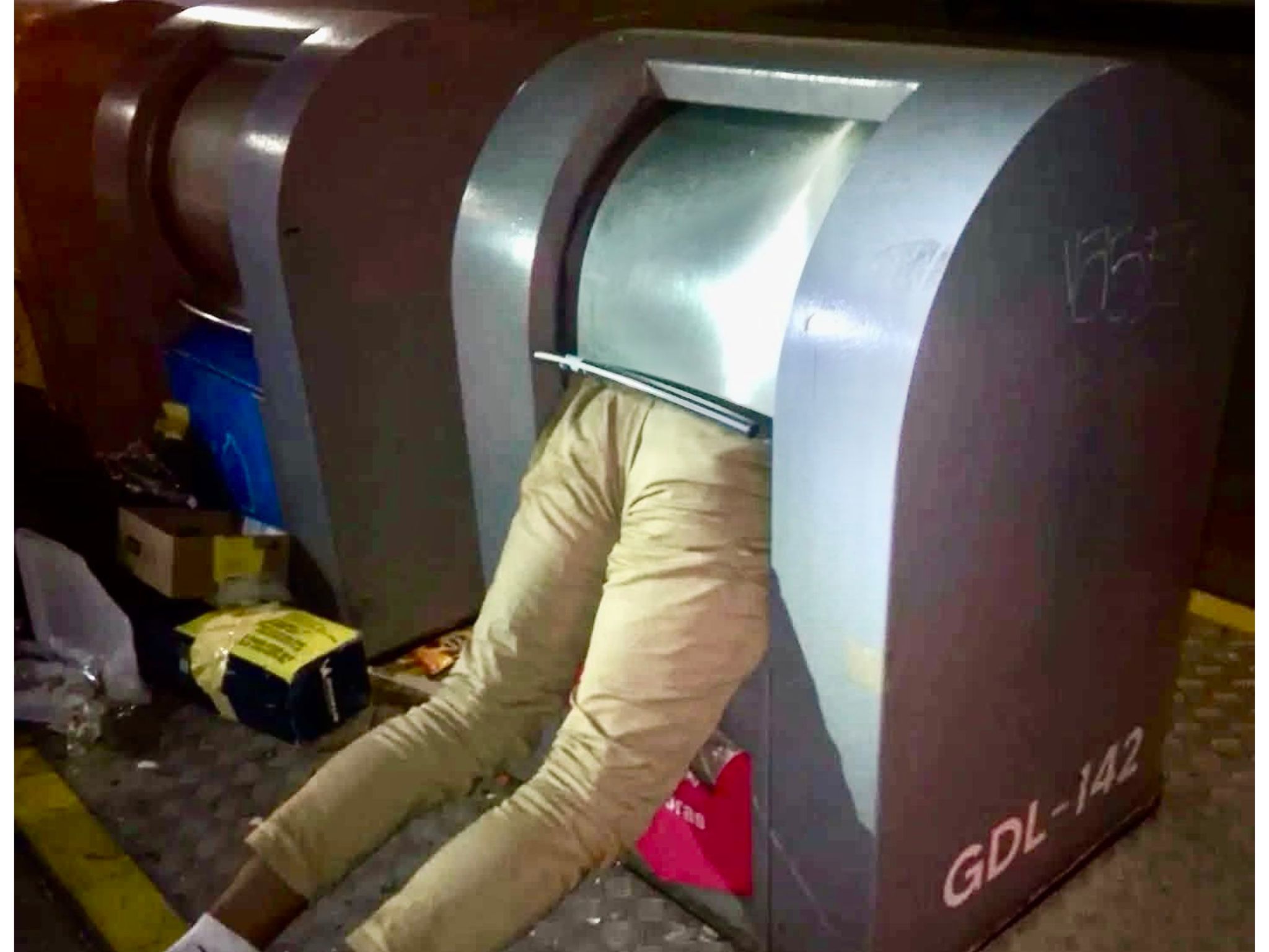 “El hombre se metió para sacar algo de valor, pero el contenedor ‘se lo comió’ y no pudo encontrar el punto de apoyo para salir”, comentaron testigos en el lugar.